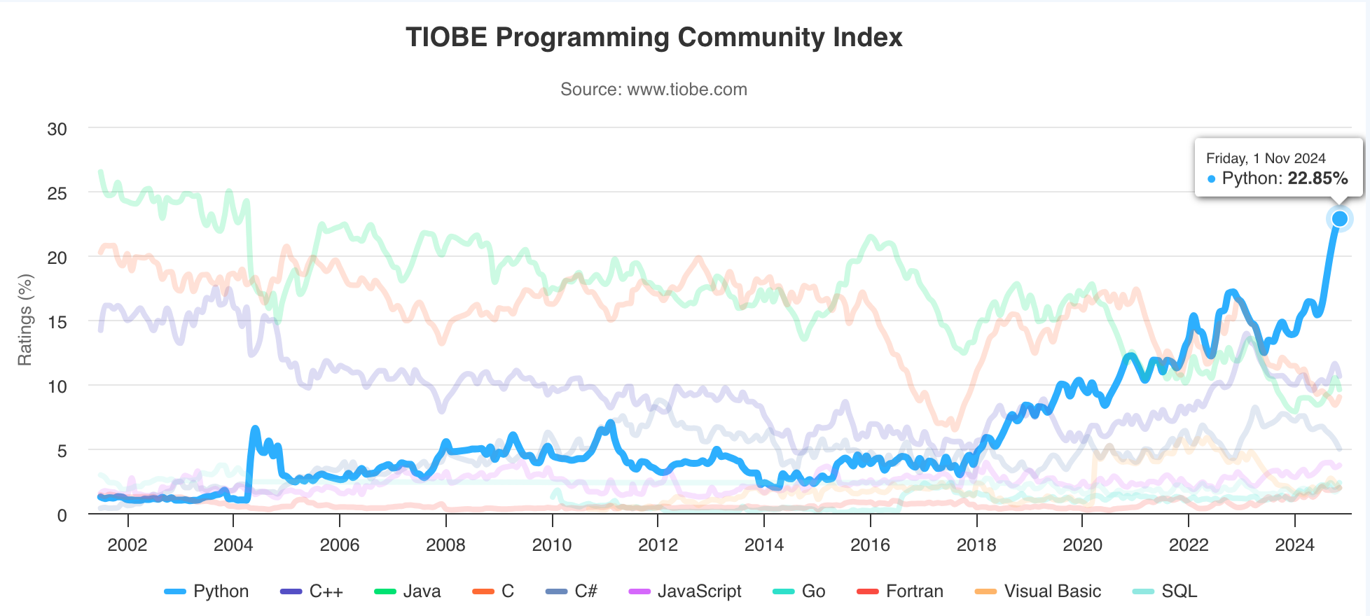 - Python isn’t just the #1 programming language on the TIOBE Index; it’s a gateway to creating the future, with its record-breaking rise and a historic 18% ranking this August proving it’s here to lead the way.